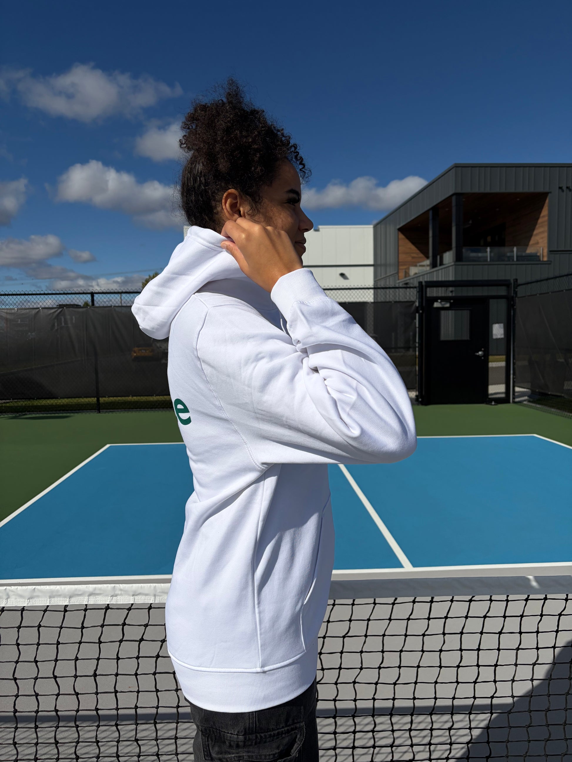 Chandail à capuchon unisexe Espace Pickleball – Blanc classique